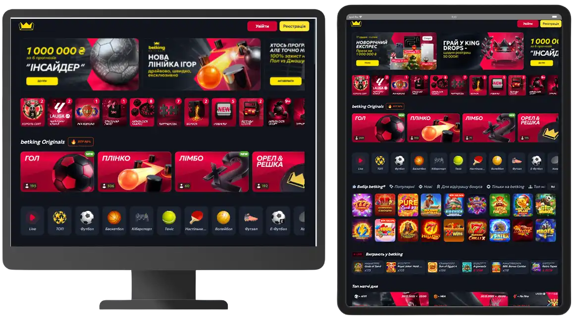 Казино Betking (колишній Slotoking) функціонує за ліцензією КРАІЛ №150 від 12.04.2021 та пропонує понад 3000 ігор від 96 студій, включно з NetEnt, Microgaming, EGT, Evolution Gaming, Quickspin, Yggdrasil, Play’n GO та іншими. Користувачі можуть скористатися вітальним пакетом до 150 000₴ та 750 обертань на перші п’ять поповнень рахунку. Також доступні бонуси на ставки до 100 000₴, кешбек до 17%, а також програма лояльності з п’ятьма лігами та десятьма рівнями в кожній.
